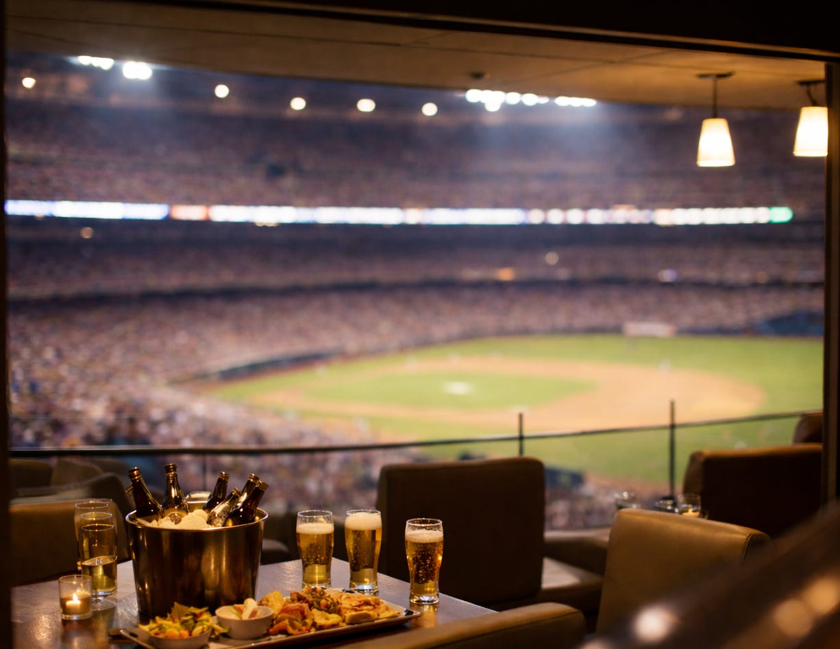 We’d sit in great seats, close enough to hear the crack of Jason Giambi’s bat, or tucked into a luxury box. There was food, drinks, and a kind of polished hospitality that made you feel important. I still remember the elation of being handed a beer by an attractive woman before I was legally allowed to drink. No one seemed to think much of it.
